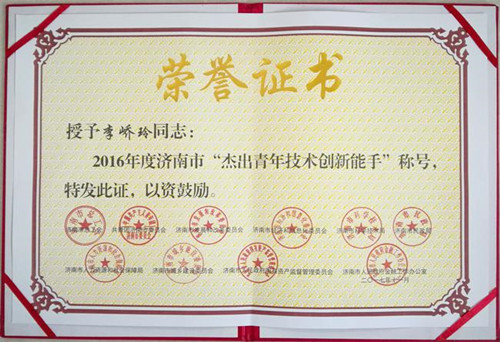 近日,濟南市總工會、團市委、市發(fā)改委、市經(jīng)信委、市科技局、市民政局、市人社局、市城鄉(xiāng)建設(shè)委、市國資委、市金融辦聯(lián)合發(fā)文表彰2016年度濟南市青年崗位操作能手和青年技術(shù)創(chuàng)新能手。濟南城建集團六分公司青年職工李嶠玲榜上有名,被授予2016年度濟南市杰出青年技術(shù)創(chuàng)新能手稱號。