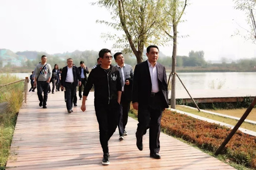 在集團(tuán)領(lǐng)導(dǎo)和相關(guān)人員陪同下,王中軍一行來(lái)到華山生態(tài)濕地公園,進(jìn)行了實(shí)地參觀(guān)考察,華山片區(qū)項(xiàng)目相關(guān)負(fù)責(zé)人向王中軍一行介紹了華山片區(qū)的開(kāi)發(fā)建設(shè)情況。李國(guó)祥董事長(zhǎng)向王中軍一行介紹道,華山歷史文化底蘊(yùn)深厚,這里曾發(fā)生過(guò)著名的齊晉鞍之戰(zhàn),趙孟頫的《鵲華秋色圖》取景于此,李白、元好問(wèn)、康有為等文人墨客對(duì)此情有獨(dú)鐘。王中軍表示,華山是個(gè)有山有水有歷史文化的地方,非常的宜居,也很適合做文化藝術(shù)類(lèi)項(xiàng)目,他有興趣在未來(lái)促進(jìn)此類(lèi)項(xiàng)目的落地。