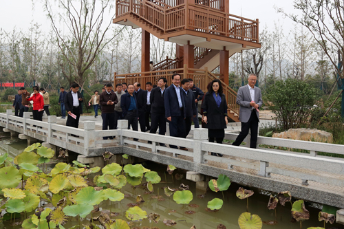 10月17日下午,省政府副秘書長辛樹人帶領(lǐng)省泰山山水林田湖生態(tài)保護修復(fù)試點工程調(diào)研組一行21人赴歷城區(qū)華山鎮(zhèn),考察小清河濟南市區(qū)段生態(tài)保護修復(fù)工程,聽取相關(guān)工作情況匯報,集團總經(jīng)理李培杰、副總經(jīng)理黃蓓及相關(guān)負責(zé)人陪同考察。