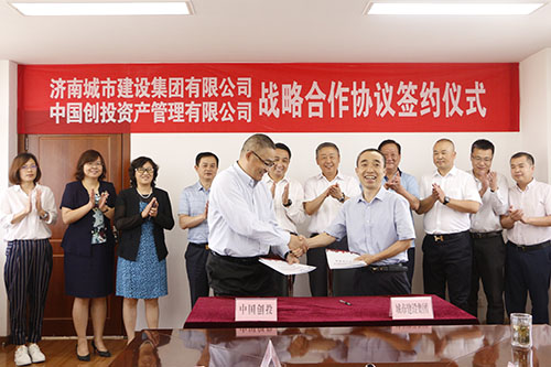 近日,濟(jì)南城市建設(shè)集團(tuán)有限公司(以下簡(jiǎn)稱“集團(tuán)”)與中國(guó)創(chuàng)投資產(chǎn)管理有限公司(以下簡(jiǎn)稱“中國(guó)創(chuàng)投”)舉行戰(zhàn)略合作協(xié)議簽約儀式。中國(guó)創(chuàng)投董事長(zhǎng)王大明,總裁徐浩,副總裁王大永,城市建設(shè)集團(tuán)黨委書記、董事長(zhǎng)李國(guó)祥,黨委副書記、總經(jīng)理李培杰,總會(huì)計(jì)師范天云等相關(guān)負(fù)責(zé)同志出席了簽約儀式。濟(jì)南市財(cái)政局副局長(zhǎng)王宏偉受邀參加活動(dòng)。