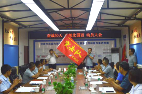 黃河路橋為貫徹落實集團公司關(guān)于北園西延項目的各項工作部署和要求,順利完成指揮部制定的目標,先后開展了“奮戰(zhàn)100天,實現(xiàn)新跨越”、“奮戰(zhàn)50天,沖刺北園西”等動員活動。同時,攻堅克難、多措并舉、認真落實標準化建設理念,從施工現(xiàn)場各道工序再到項目部全方位實施標準化建設。