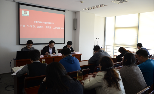 2018年4月9日,濟南西城資產(chǎn)管理有限公司組織召開“大學習、大調(diào)研、大改進”工作動員大會。會議由資產(chǎn)公司副總經(jīng)理楊坤同志主持并宣讀《濟南西城資產(chǎn)管理有限公司開展“大學習、大調(diào)研、大改進”工作實施方案》,副總經(jīng)理陳向勤同志宣讀《濟南城市建設集團創(chuàng)建全國文明單位工作方案》,董事長兼總經(jīng)理顏丙根同志就以上工作作動員講話。