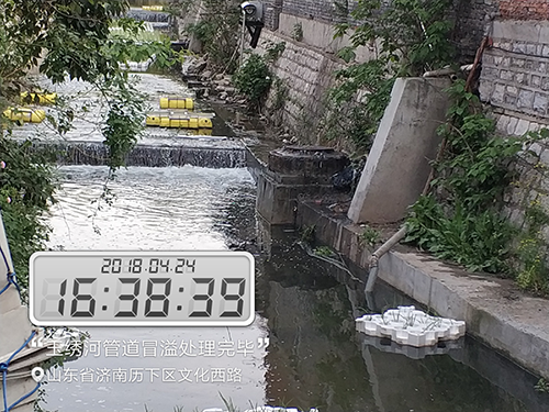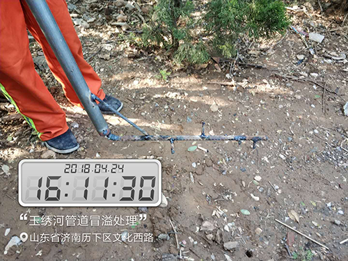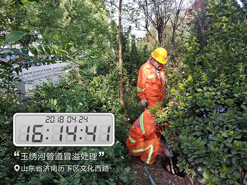 2018年4月24日濟南市政公用資產(chǎn)管理運營有限公司接到濟南市排水管理服務中心通知,在玉繡河下游發(fā)現(xiàn)一處檢查井冒溢,污水冒溢至玉繡河內(nèi)直接造成河道污染,接到通知后,公司立即安排應急搶險小組前往現(xiàn)場,經(jīng)過現(xiàn)場排查該管段位于玉繡河河床內(nèi),不屬于我公司管轄范圍,按照市城鄉(xiāng)水務局“2018清網(wǎng)行動”精神指示,本著有險情先搶險的原則,公司對該冒溢點立即進行搶修,保證管網(wǎng)正常運行。