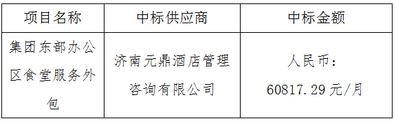 集團(tuán)東部辦公區(qū)食堂服務(wù)外包項(xiàng)目中標(biāo)公示