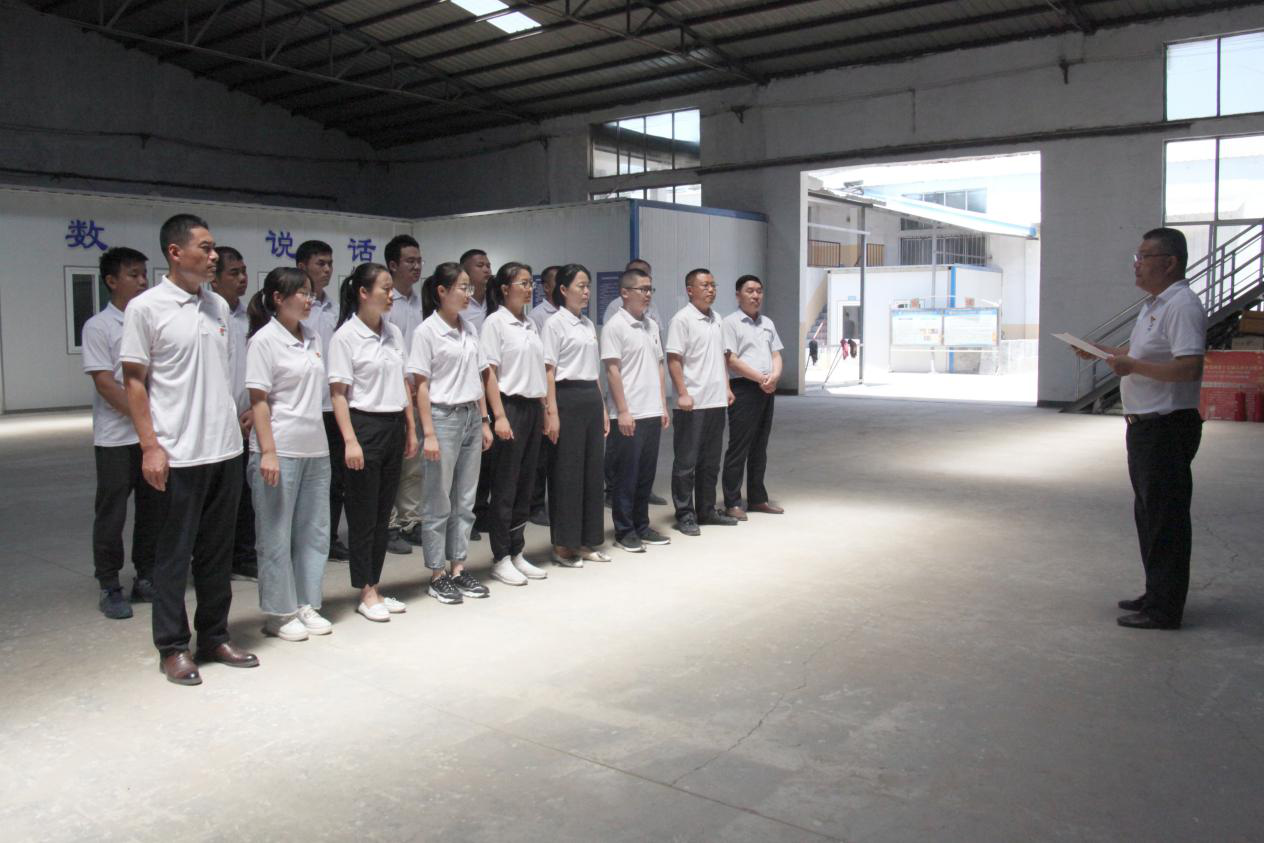 啟動儀式結(jié)束后,黨支部舉行“慶七一”主題黨日活動,為黨支部支部宋海濤、劉相革和范婷婷三名黨員同志過了政治生日,重溫了入黨誓詞,支部副書記韓作新就《習(xí)近平新時代中國特色社會主義思想學(xué)習(xí)綱要》作了專題黨課。