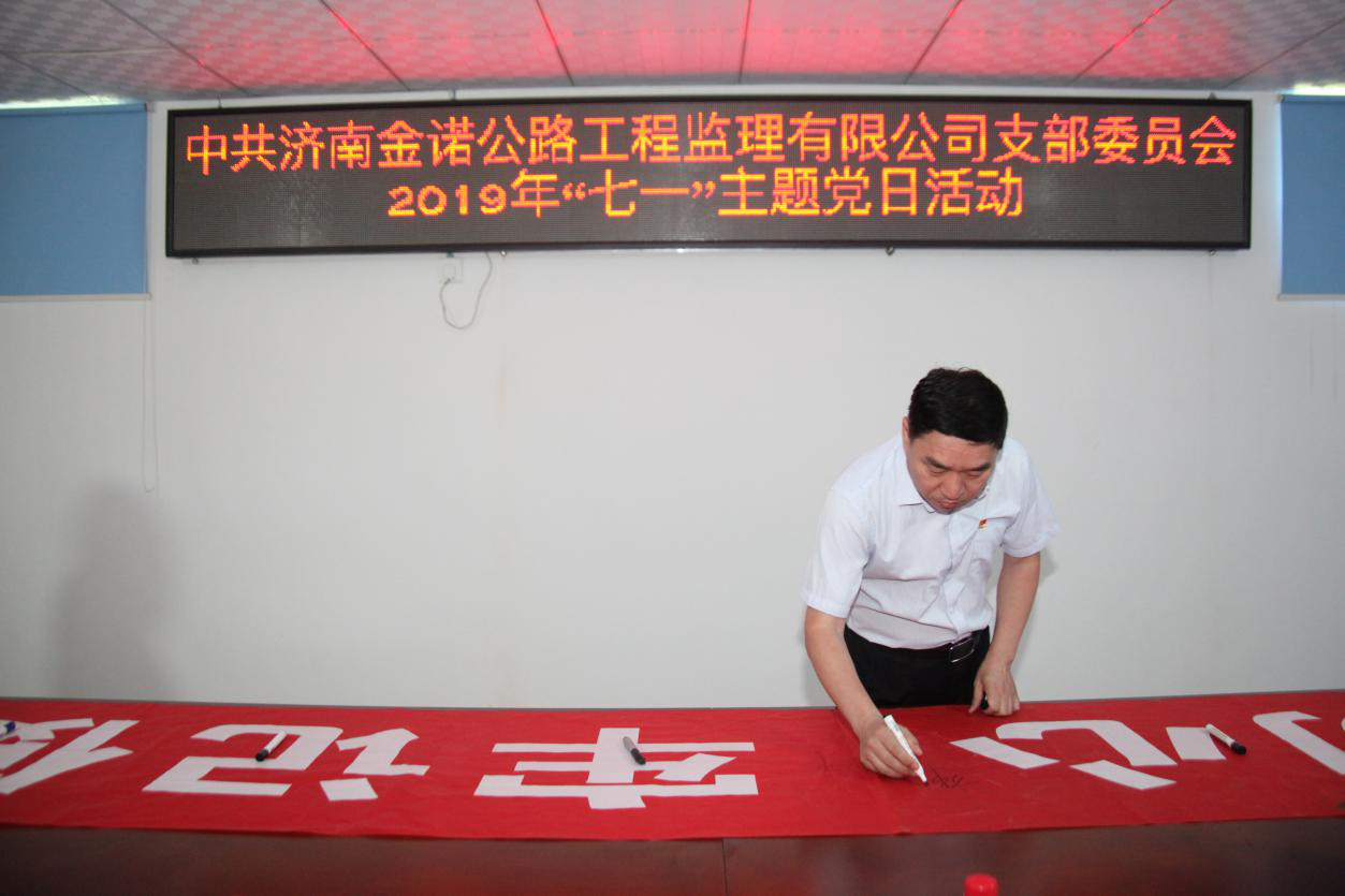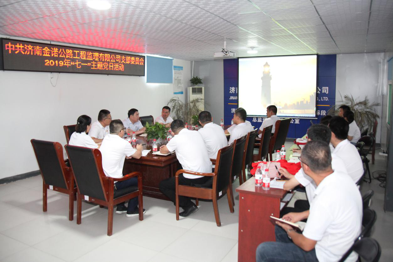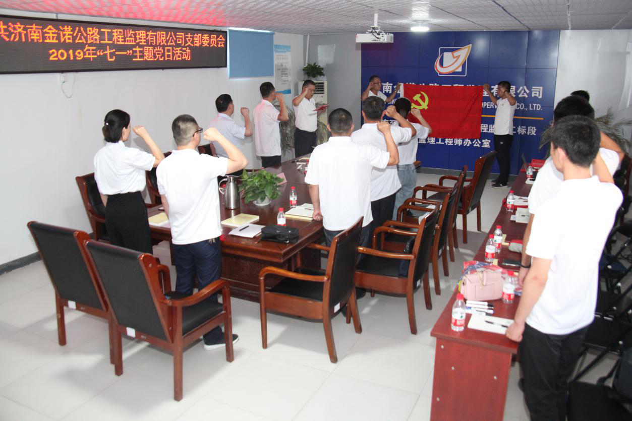 為慶祝中國共產(chǎn)黨成立98周年,喜迎祖國70周年華誕,充分發(fā)揮黨員的先鋒模范作用,深入推進(jìn)“不忘初心 牢記使命”主題教育活動開展,錘煉黨員“忠誠、干凈、擔(dān)當(dāng)”的政治品格,實現(xiàn)以“黨建促生產(chǎn)”的目標(biāo)。7月1日上午濟(jì)南金諾公路工程監(jiān)理有限公司黨支部在濟(jì)南至樂陵高速公路南延工程總監(jiān)辦舉行了“打贏交通樞紐攻堅戰(zhàn) 創(chuàng)建黨員服務(wù)先鋒隊”活動啟動儀式暨“慶七一”主題黨日活動。公司黨員、積極分子共20余人參加活動。