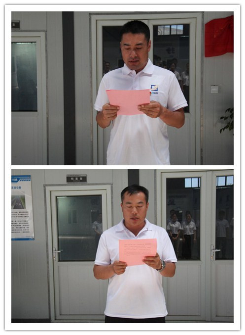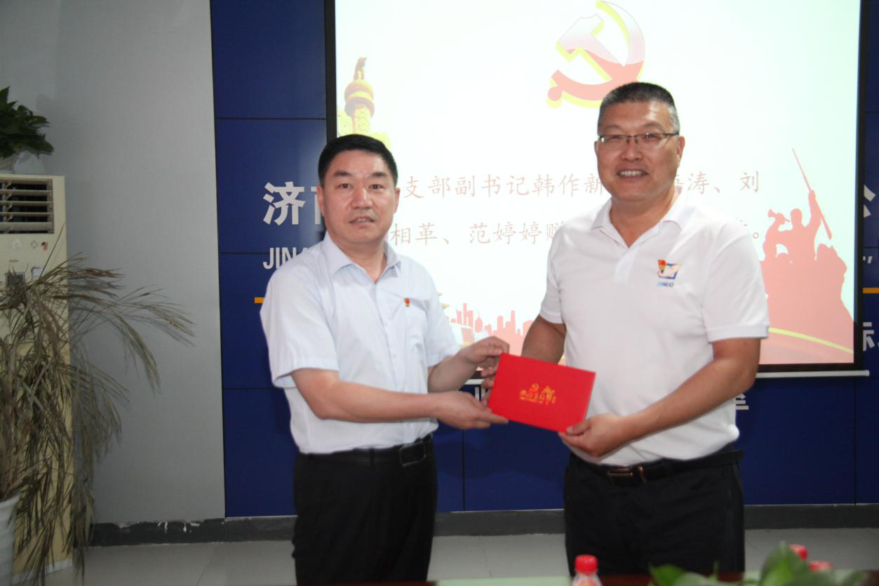 濟(jì)南金諾公路工程監(jiān)理有限公司黨支部副書記、總經(jīng)理韓作新同志為四支“黨員服務(wù)先鋒隊”授旗。