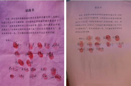 “我鄭重提出申請,志愿加入濟(jì)南城市建設(shè)集團(tuán)第六批下沉社區(qū)志愿服務(wù)隊(duì),投身疫情防控一線,為打贏疫情防控阻擊戰(zhàn)作出應(yīng)有的貢獻(xiàn)!”