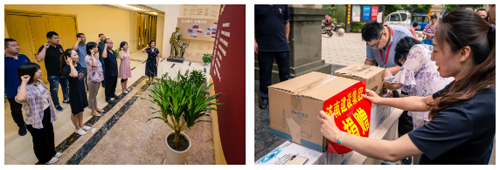 在濱湖社區(qū)宗旨教育展廳,全體黨員和積極分子在審計(jì)與監(jiān)事會(huì)黨支部書記祁詠梅的帶領(lǐng)下重溫了入黨誓詞。集團(tuán)黨委委員、總會(huì)計(jì)師范天云帶領(lǐng)黨員們?yōu)樯鐓^(qū)捐贈(zèng)了礦泉水、花露水、洗手液等防暑物資。濟(jì)北街道、濱湖社區(qū)及集團(tuán)“四進(jìn)”工作組有關(guān)同志陪同參加了此次活動(dòng)。