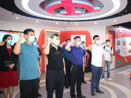 全體黨員在講解員的引導(dǎo)下,認(rèn)真參觀學(xué)習(xí)、拍照記錄。觀看學(xué)習(xí)最后,大家共同高唱《沒有共產(chǎn)黨就沒有新中國》,并重溫入黨誓詞。