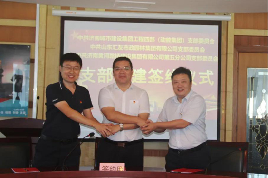 為進一步增強基層黨建活力,充分發(fā)揮基層黨建的核心引領作用,促進單位間的工作聯(lián)動與業(yè)務融合,9月17日,集團工程四部(動能集團)黨支部、城建集團園林公司黨支部、濟南黃河路橋五分公司黨支部結對共建簽約儀式。