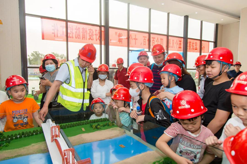 在建筑安全體驗(yàn)館,在施工安全管理人員及父母的陪同下,孩子們現(xiàn)場(chǎng)了解了安全管理對(duì)于施工的重要性,同時(shí)親身體驗(yàn)了一系列的實(shí)景模擬設(shè)備。