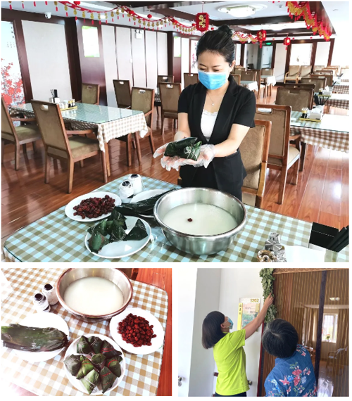 為響應(yīng)疫情防控的號(hào)召、保證長(zhǎng)者的生命健康安全,金齡健康-山東濟(jì)南養(yǎng)老服務(wù)中心的舜耕餐飲以及園區(qū)的工作人員們親手包好了粽子,將飽含著“端午安康”寓意的粽子親手送到每位長(zhǎng)者的家中。同時(shí),工作人員們挨家挨戶為長(zhǎng)者贈(zèng)送艾草,并幫助長(zhǎng)者將艾草懸掛在門口。長(zhǎng)者朋友們親手為園區(qū)的工作人員們編織了驅(qū)災(zāi)病、保安康的五彩繩,并以詩詞等形式為工作人員送出了美好的祝愿。