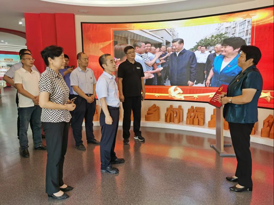 在三澗溪村,工作人員帶領(lǐng)大家重走習(xí)近平總書(shū)記的考察足跡。在村委會(huì)黨群服務(wù)中心,深入了解了三澗溪村的成長(zhǎng)史、黨組織的發(fā)展歷程、黨組織建設(shè)經(jīng)驗(yàn)和先進(jìn)做法,以及“四鄰聯(lián)動(dòng)”等為民服務(wù)體系。在鄉(xiāng)村振興主題展館,工作人員為大家講解了習(xí)近平總書(shū)記親臨三澗溪村視察指導(dǎo)的有關(guān)情形,并結(jié)合實(shí)物、圖片、視頻、展板等載體講述了三澗溪黨委不忘初心,牢記使命,擔(dān)當(dāng)作為,團(tuán)結(jié)帶領(lǐng)村民脫貧致富的奮斗歷程。期間,工作組與三澗溪村黨委書(shū)記高淑貞就黨建引領(lǐng)、鄉(xiāng)村振興等方面進(jìn)行了暢談交流,參觀結(jié)束,全體人員在黨旗前重溫了入黨誓詞。