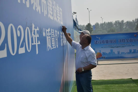 儀式結束后,參加活動全體人員在“質(zhì)量月”活動動員大會背景板簽名。