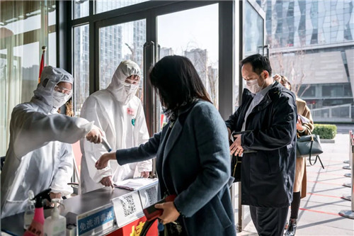 時間倒回至2月25日,蒙蒙細雨中,6位要參會的同志被“攔”在大廈門口,經(jīng)過防疫人員的“盤查”和測體溫等多個程序才得以進入大廈。然而差點被拒之門外的他們不僅沒有怨言,反而盛贊“六親不認”的一線防疫人員和資產(chǎn)公司嚴格的防控舉措。