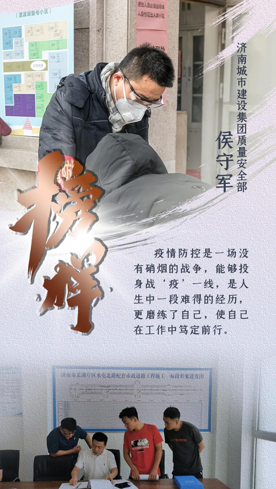 新型冠狀病毒肺炎疫情發(fā)生以來,濟(jì)南城市建設(shè)集團(tuán)認(rèn)真貫徹落實(shí)中央、省、市關(guān)于疫情防控和復(fù)工復(fù)產(chǎn)的決策部署,上下一心、眾志成城,全體干部職工恪盡職守、扎根一線,全員全力投入到疫情防控阻擊戰(zhàn)中。期間,涌現(xiàn)出了眾多先進(jìn)典型和感人故事,用實(shí)際行動(dòng)詮釋了建設(shè)集團(tuán)人的精神風(fēng)貌和責(zé)任擔(dān)當(dāng)。我們?cè)诩瘓F(tuán)宣傳平臺(tái)《榜樣》欄目,推出系列人物報(bào)道,挖掘宣傳一線典型,提振士氣、凝聚力量,激勵(lì)我們繼續(xù)前行,堅(jiān)決打贏疫情防控的人民戰(zhàn)爭(zhēng)、總體戰(zhàn)、阻擊戰(zhàn)。