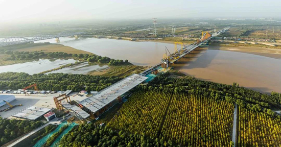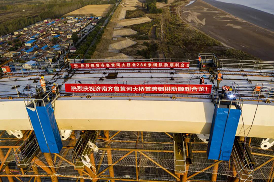 繼濟(jì)樂高速南延線順利通車、鳳凰黃河大橋主橋合龍后,由濟(jì)南城市建設(shè)集團(tuán)負(fù)責(zé)建設(shè)管理的跨黃通道工程又迎來重要節(jié)點(diǎn),經(jīng)過90天的連續(xù)作業(yè),10月21日凌晨,齊魯黃河大橋首跨拱肋順利合龍。隨著最后一節(jié)段拱肋的精準(zhǔn)安裝到位,項(xiàng)目建設(shè)再次取得重要節(jié)點(diǎn)性進(jìn)展。