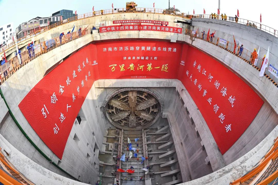 10月30日,隨著“泰山號”盾構(gòu)機(jī)巨大刀盤破土而出,第1254環(huán)管片拼裝到位,“萬里黃河第一隧”濟(jì)南黃河隧道工程東線隧道率先貫通,標(biāo)志著我國在建的最大直徑公軌合建盾構(gòu)隧道取得重大進(jìn)展,在世界上首次穿越地上“懸河”。該工程由濟(jì)南城市建設(shè)集團(tuán)負(fù)責(zé)投資建設(shè),中鐵十四局集團(tuán)作為EPC總承包方,聯(lián)合中鐵第四勘察設(shè)計(jì)院集團(tuán)有限公司、黃河勘測規(guī)劃設(shè)計(jì)有限公司組織施工、設(shè)計(jì)。