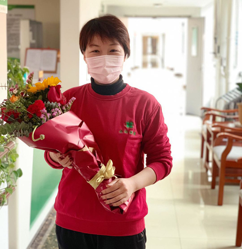 許娟,金齡健康產(chǎn)業(yè)投資(山東)有限公司運營部經(jīng)理,負責(zé)照料園區(qū)老人的日常生活。直到有人將鮮花送到,她才意識到當(dāng)天是國際婦女節(jié)。自春節(jié)以來,許娟與丈夫因為都在一線單位工作幾乎沒有碰面,兩個年幼的女兒只能托付給公婆照看,她把家人的付出與支持化作對工作的熱忱,將這份愛傳遞給身邊的每一個人。