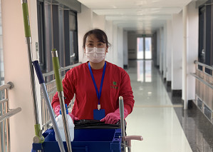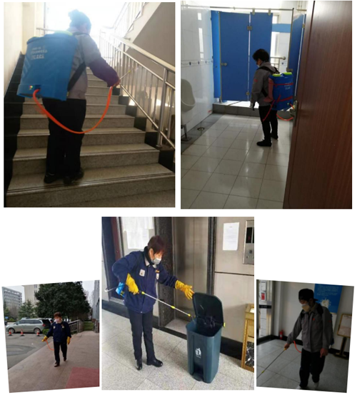 保潔員于秀菊,自春節(jié)以來,每天堅持對辦公區(qū)域消毒至少3遍,每天都是等到全部人員離開后,于秀菊對各區(qū)域進行最后一次消毒最后一個離開公司。