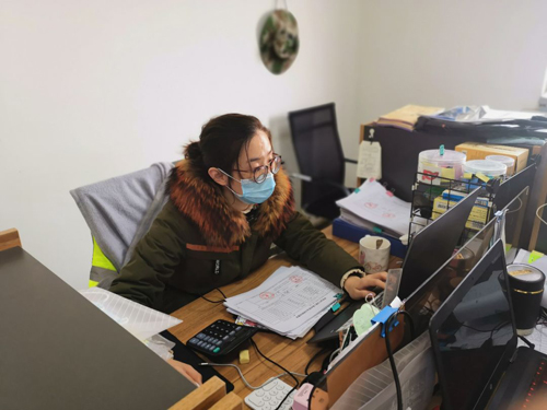 15點10分,濟樂高速南延線一標(biāo)段物資管理員劉曉宇正在收集匯總復(fù)工后的材料進場單據(jù),2019年全年經(jīng)她處理的進出場單據(jù)上萬張,出據(jù)結(jié)算單300余份,一絲不差。