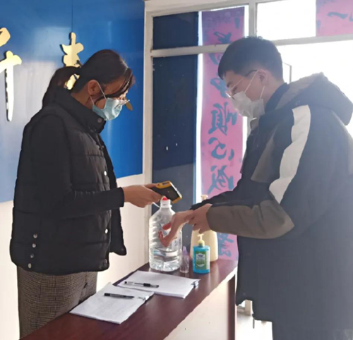 王娟每天負責(zé)出入人員的體溫測量和出入登記,看似重復(fù)又簡單的工作,王娟同志卻十分認(rèn)真負責(zé),絲毫不敢懈怠。