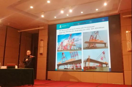 在交流會上,中鐵大橋局集團有限公司副總工程師(原港珠澳大橋管理局總工辦副主任)謝紅兵作了《港珠澳大橋橋梁建設(shè)實踐》專題報告,主要介紹上部結(jié)構(gòu)鋼橋選擇背景,設(shè)計施工重難點及科技創(chuàng)新。