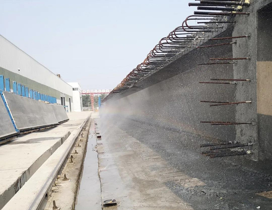 施工現(xiàn)場(chǎng)在嚴(yán)格落實(shí)“四個(gè)一律,六個(gè)百分百”環(huán)保要求的基礎(chǔ)上,用“可持續(xù)”的眼光對(duì)項(xiàng)目傳統(tǒng)的施工工藝、技術(shù)等重新審視、改進(jìn)。現(xiàn)場(chǎng)安裝揚(yáng)塵、噪音在線檢測(cè)設(shè)施;鋼筋加工區(qū)采用焊煙凈化器;灰土施工采用粉料撒布機(jī),配合濕法作業(yè);箱梁自動(dòng)養(yǎng)護(hù)噴淋系統(tǒng),滿足梁板養(yǎng)護(hù)質(zhì)量同時(shí)提高了水資源的循環(huán)利用;鋼筋加工集約化,實(shí)現(xiàn)文明施工,既減輕了工地施工現(xiàn)場(chǎng)管理負(fù)擔(dān),又減少多點(diǎn)位的環(huán)境噪音、煙氣污染源,從根本上改善了施工擾民問題。