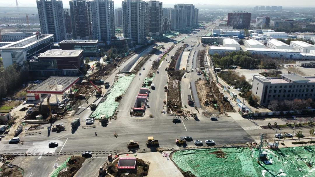 入冬以來(lái),濟(jì)南氣溫驟降。黃河大道(一期)工程克服寒潮低溫及雨雪天氣等不利因素,落實(shí)冬期施工保障措施,晝夜奮戰(zhàn),搶抓工期,施工現(xiàn)場(chǎng)熱火朝天。截至11月15日,由建設(shè)集團(tuán)所屬濟(jì)南城建集團(tuán)有限公司負(fù)責(zé)施工的三標(biāo)段,慢車(chē)道已基本完成水穩(wěn)基層與瀝青路面施工,現(xiàn)正加緊對(duì)路沿石與花磚進(jìn)行鋪設(shè)。