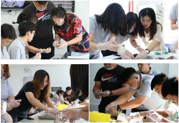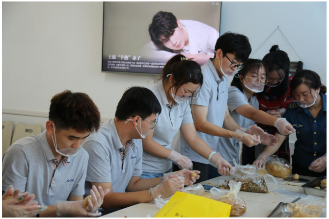 活動(dòng)中,大家認(rèn)真學(xué)習(xí)了月餅的制作方法,稱重、捏團(tuán)、入模、成型,每個(gè)人分工作合作,每個(gè)步驟都做的一絲不茍。經(jīng)過(guò)二十分鐘的烘烤,新鮮的月餅伴著香甜的氣息端出烤爐,大家也在辛苦過(guò)后品嘗到了自己的勞動(dòng)成果。