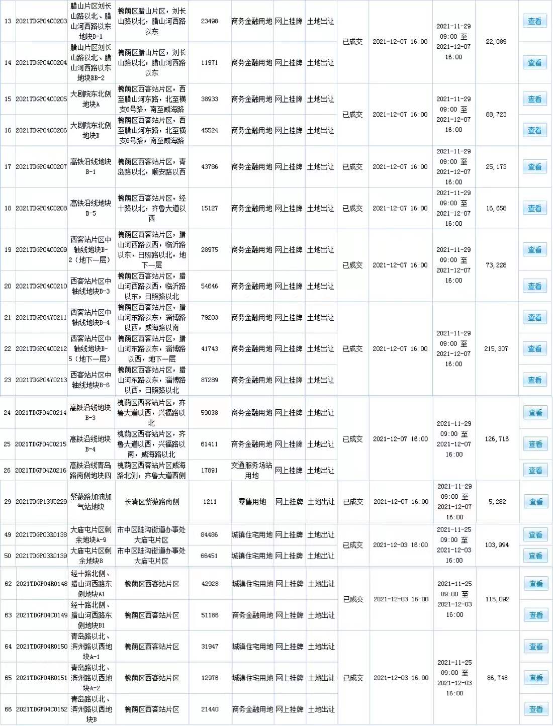 其中山東新銘潤能源有限公司摘得長清區(qū)紫薇路加油加氣站地塊;濟南龍湖世高房地產開發(fā)有限公司摘得槐蔭區(qū)經十路北側、臘山河西路東側A1、B1地塊,未來此處將建設龍湖天街項目。