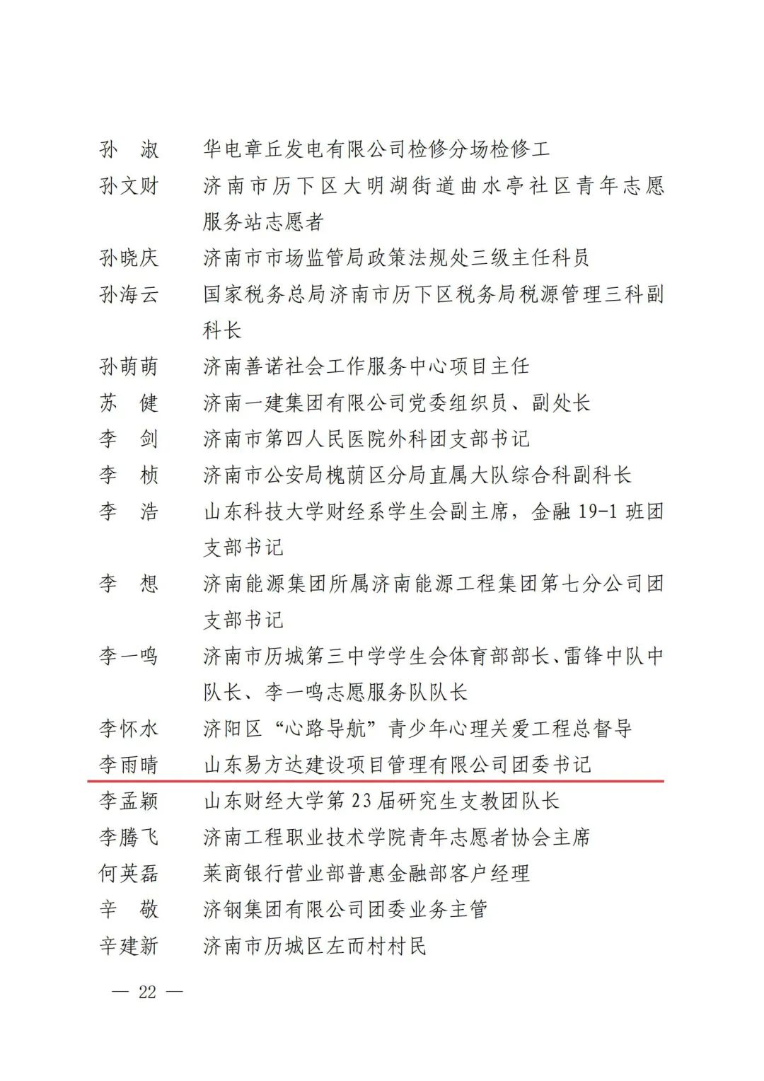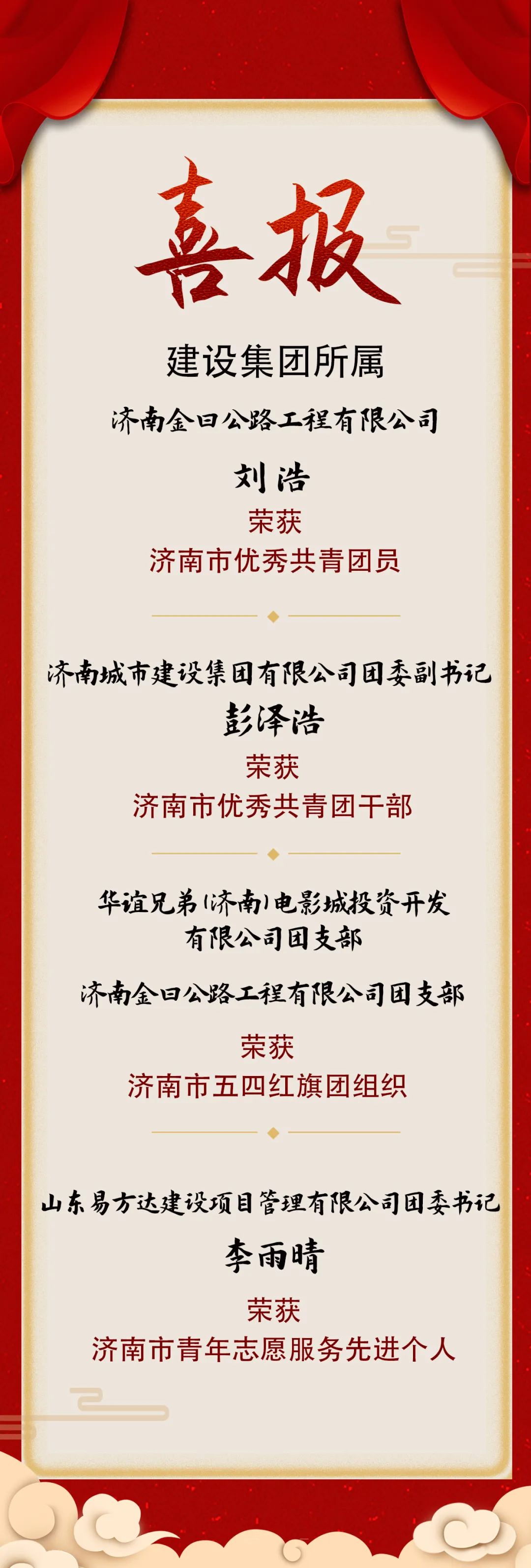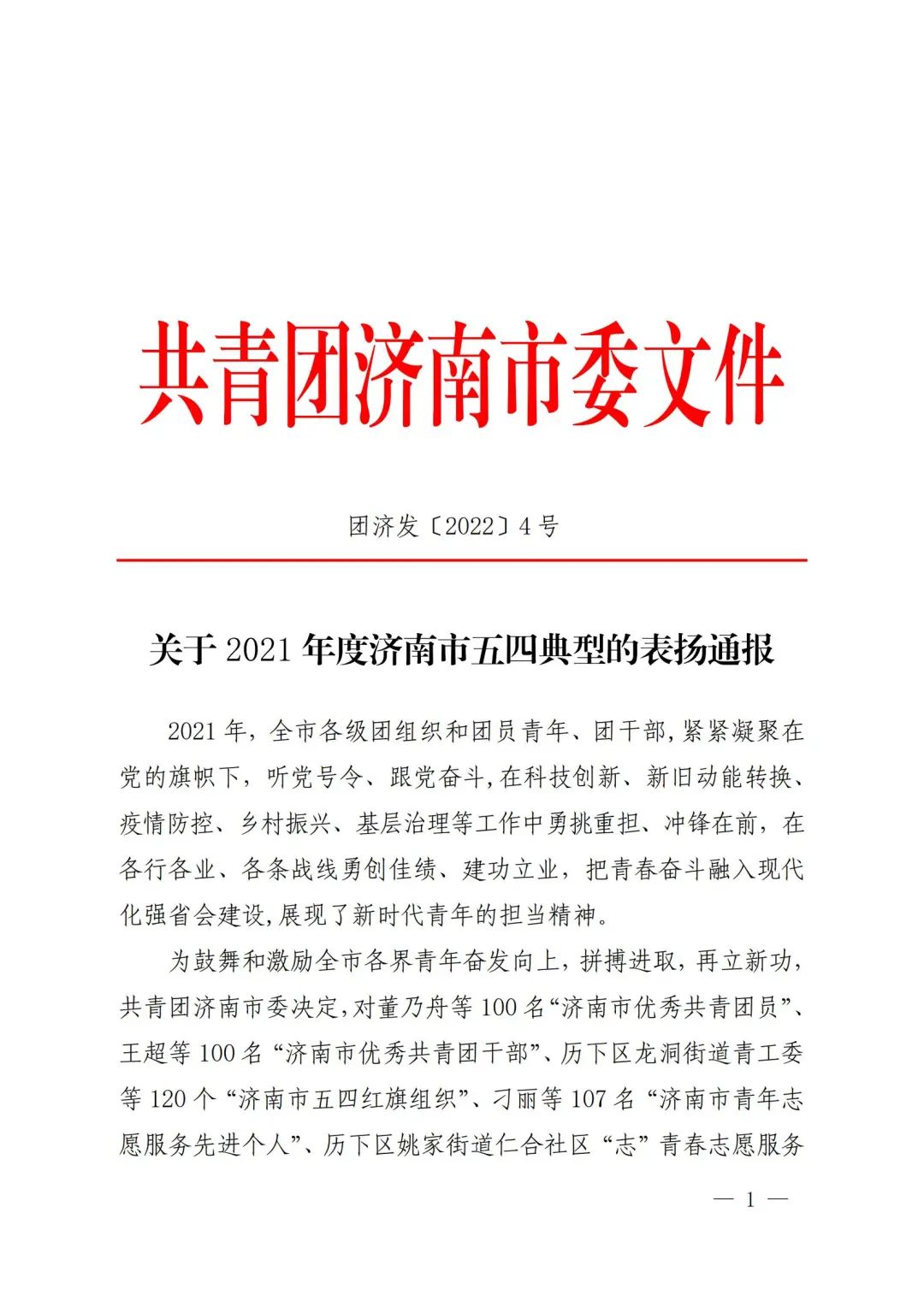 近日,共青團濟南市委公布了《關于2021年度濟南市五四出彩典型的表揚通報》,建設集團團委所屬團組織及團員青年榮獲“濟南市五四紅旗團組織”“濟南市青年志愿服務先進個人”“濟南市優(yōu)秀共青團員”“濟南市優(yōu)秀共青團干部”等4項榮譽稱號。