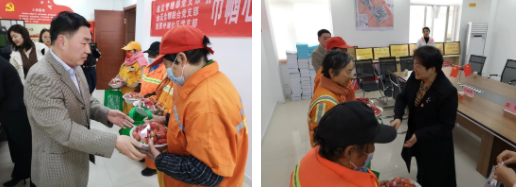 活動中,雙方黨支部黨員對“三八”國際婦女節(jié)仍堅守一線工作崗位的環(huán)衛(wèi)女職工表示崇高的敬意,并對他們無私奉獻、任勞任怨的品質表示贊許,同時向環(huán)衛(wèi)職工送上慰問品。