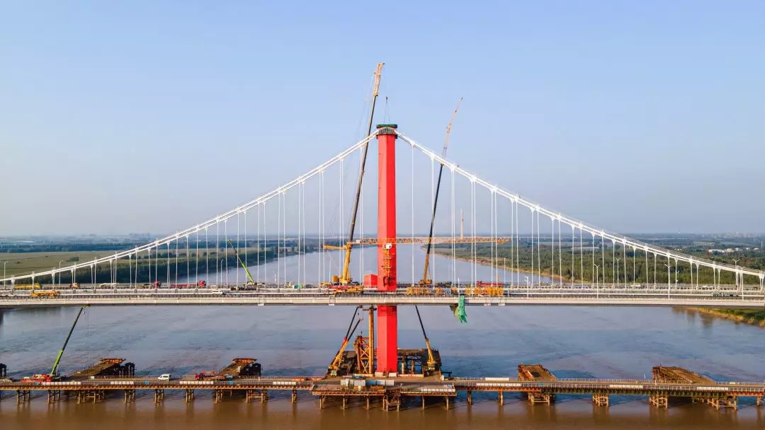 濟南黃河鳳凰大橋項目由濟南城市建設(shè)集團投資建設(shè),上海市政工程設(shè)計研究總院(集團)設(shè)計,中鐵十二局、中交第二航務(wù)工程局負責施工。工程自2018年1月啟動以來,省、市領(lǐng)導高度關(guān)注,多次蒞臨現(xiàn)場調(diào)研指導;相關(guān)區(qū)縣、管委會、市直部門全力支持,及時協(xié)調(diào)解決問題,提供高效要素保障;各參建單位克服技術(shù)難度高、施工工期緊等因素,在保證質(zhì)量和安全的前提下,加班加點,飽和施工,按期實現(xiàn)了交工通車目標。