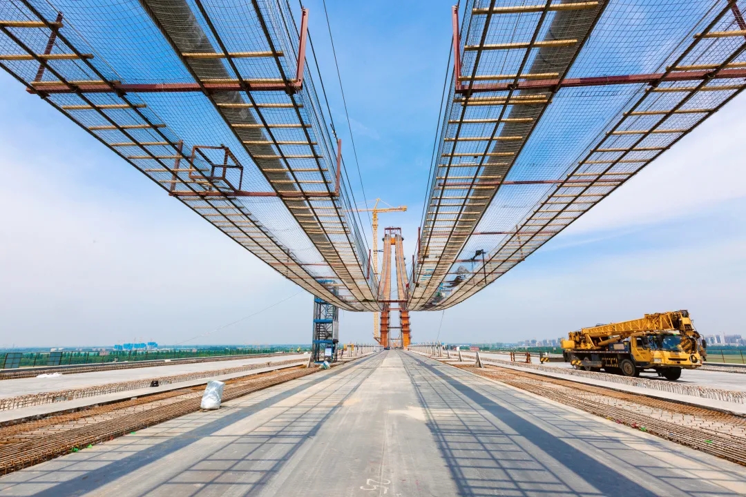 世界橋面最寬的特大鋼箱梁橋。項目按照雙向8車道一級公路標準建設(shè),跨黃段橋梁范圍為公軌合建的橋梁形式,中間預(yù)留城市軌道交通空間,同時兩側(cè)設(shè)置跨河慢行通道,鋼箱梁全寬61.7米,是世界橋面最寬的特大鋼箱梁橋。