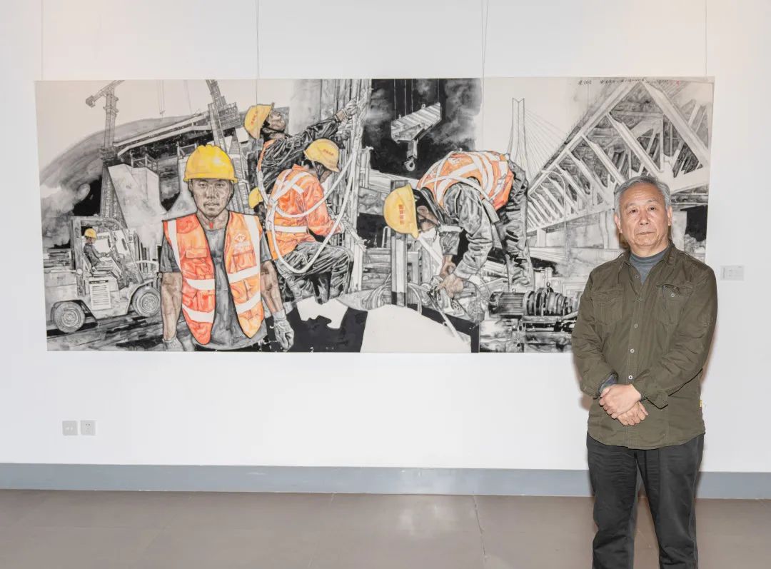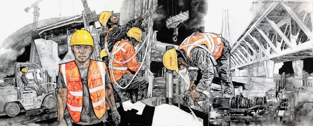 山東省中國畫學(xué)會(huì)副會(huì)長、山東省美協(xié)綜合材料繪畫藝委會(huì)副會(huì)長李兆虬走進(jìn)濟(jì)南黃河大橋改擴(kuò)建工程建設(shè)現(xiàn)場,采風(fēng)創(chuàng)作了《建設(shè)者—濟(jì)南黃河公路大橋建設(shè)紀(jì)實(shí)》作品。