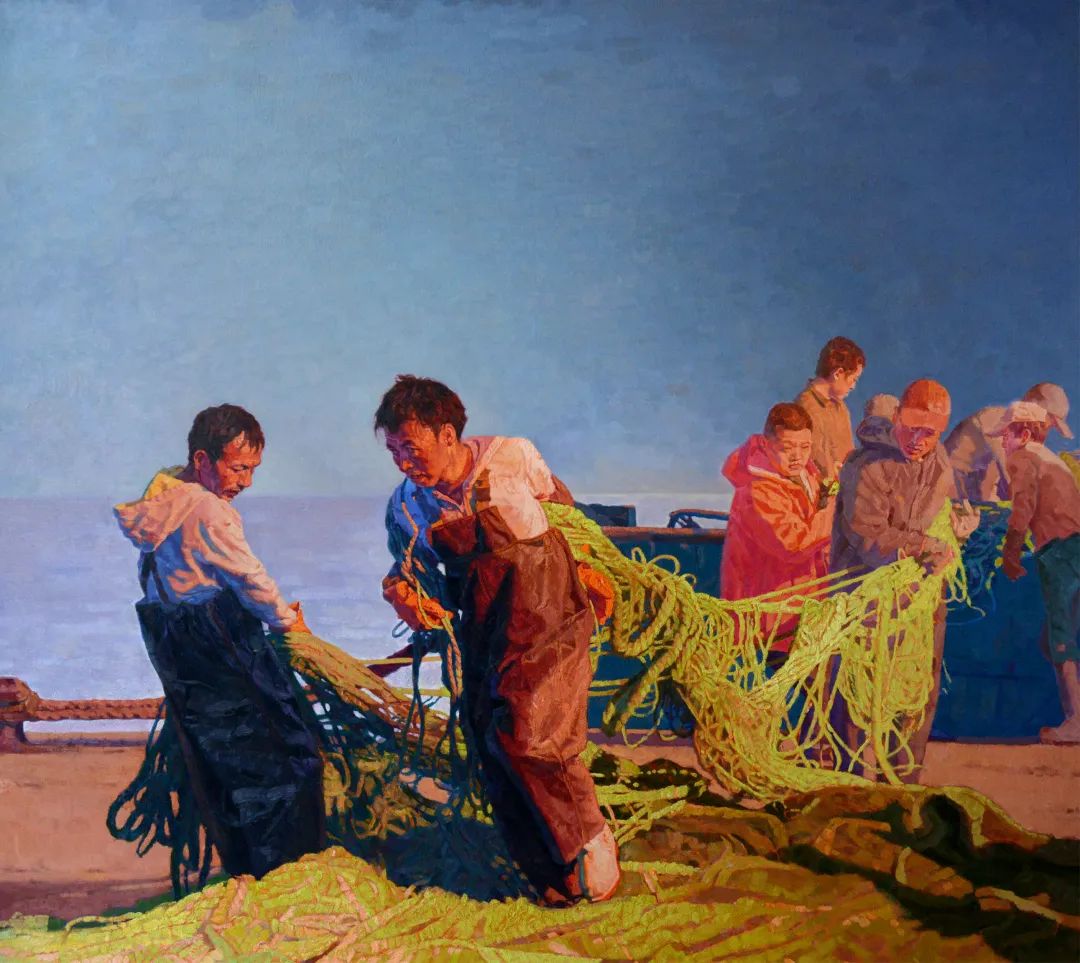 “藝術(shù)來源于生活,又高于生活”。吳愛民說:“雖然這幅畫的創(chuàng)作背景不是濟(jì)南,但體現(xiàn)的就是日常生活中勞動(dòng)者的點(diǎn)滴付出”。畫面中應(yīng)用了暖光源,去表現(xiàn)漁民豐收時(shí)的愉悅心情。“勞動(dòng)是一切幸福的源泉”。“因?yàn)楦餍懈鳂I(yè)的勞動(dòng)者默默付出,城市變得更好,人民也體會(huì)到自己創(chuàng)造的幸福生活”,吳愛民說道。