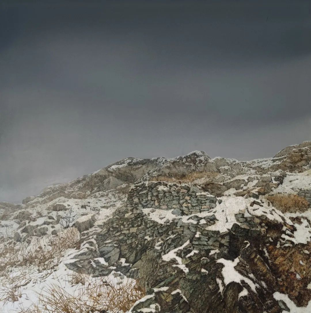 盧俊興創(chuàng)作的《晴雪》作品,遠(yuǎn)看與一般畫作沒有不同。“漆畫是以天然大漆為主要材料的繪畫,除漆之外,還有金、銀、鉛、錫以及蛋殼、貝殼、石片、木片等材料”盧俊興說:“這幅畫中的雪的顏色就是雞蛋殼,需要將雞蛋殼進(jìn)行浸泡,一層層撕掉內(nèi)層的膜才能往上貼。”他記不得創(chuàng)作這幅畫要用多少雞蛋,只打趣說“再也不想吃雞蛋了”。