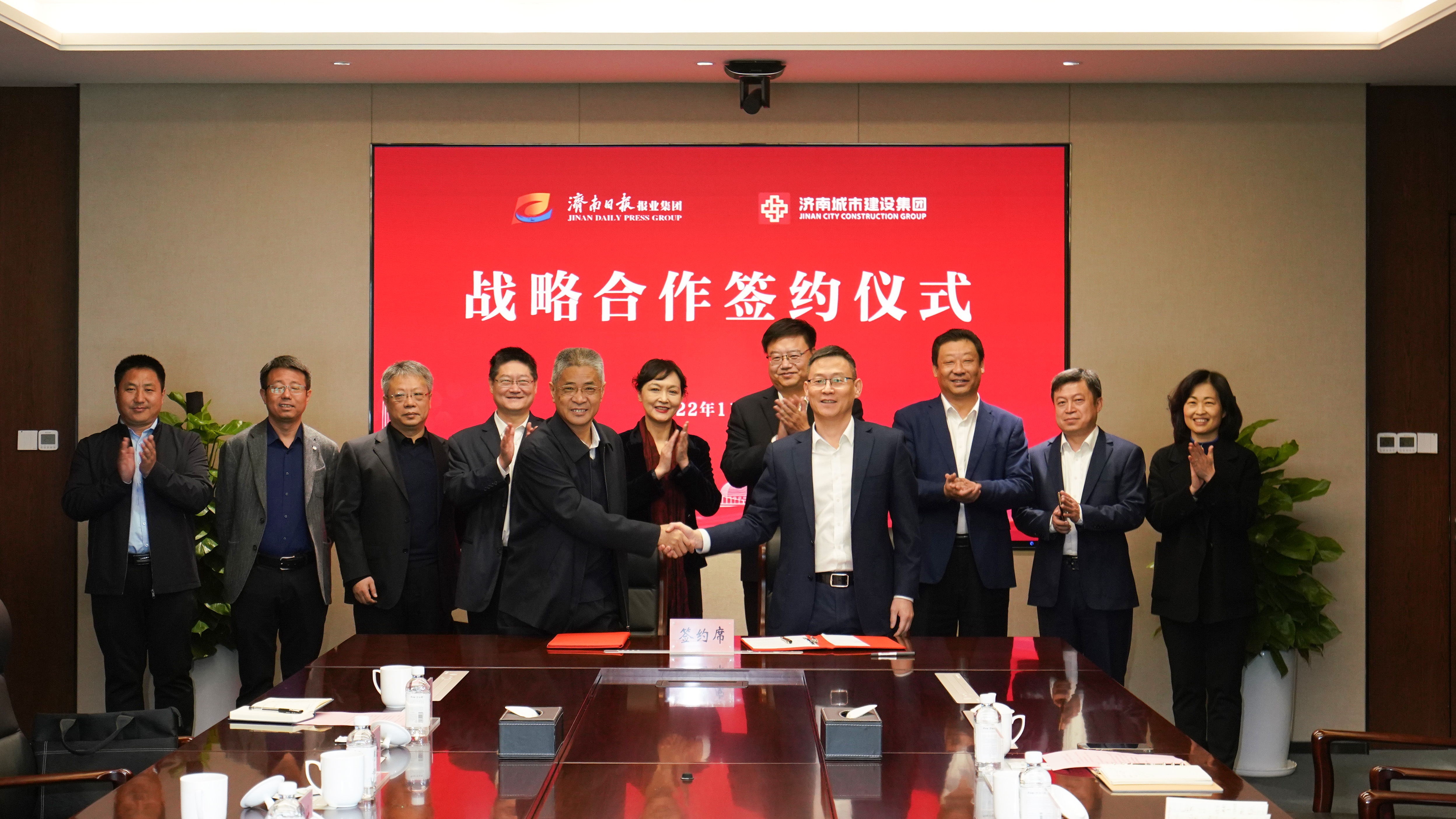 張楠、許為民同志分別代表濟南日報報業(yè)集團、濟南城市建設(shè)集團簽訂戰(zhàn)略合作協(xié)議。