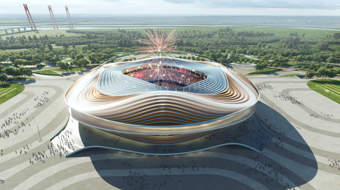 專業(yè)足球場項(xiàng)目,總建筑面積約20.1萬平方米,其中地上建筑面積約14.8萬平方米,地下建筑面積約5.3萬平方米。包含6萬余座席,具備承擔(dān)世俱杯、亞洲杯等國際足聯(lián)A級(jí)賽事及國內(nèi)大型賽事等專業(yè)賽事。
