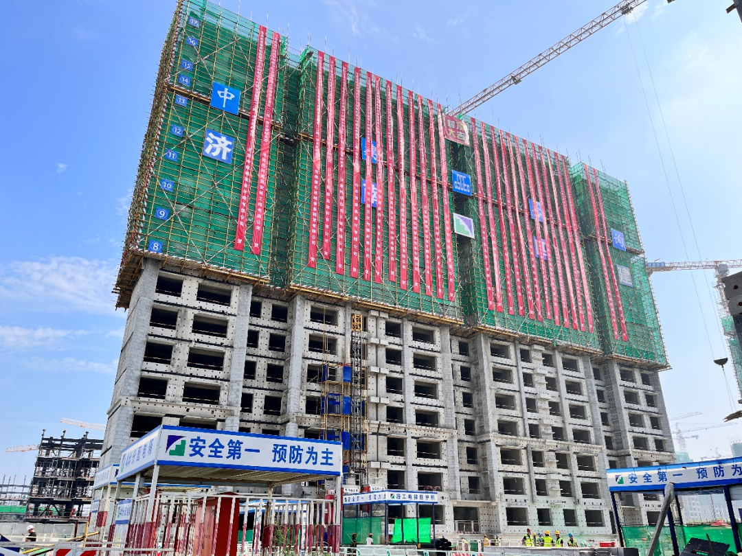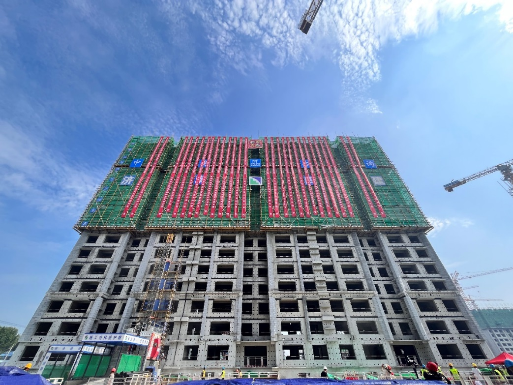 7月15日,由濟(jì)南城市建設(shè)集團(tuán)受委托建設(shè)的濟(jì)南新舊動能轉(zhuǎn)換起步區(qū)孫耿街道七村整合安置區(qū)(二期)工程2#樓封頂,是二期項目首棟封頂單體工程。日前,孫耿街道七村整合安置區(qū)(三期)工程已完成首棟住宅封頂,目前,二期、三期工程正搶抓黃金施工期,全力推進(jìn)工程建設(shè)。