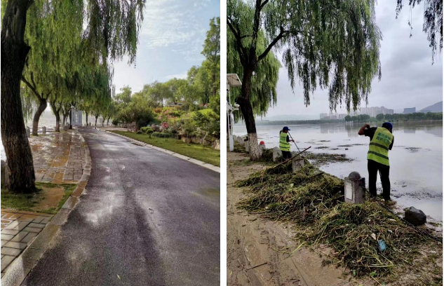 降雨過(guò)后,長(zhǎng)清湖水面及沿岸道路出現(xiàn)不同程度的雜物和淤泥,為有效控制暴雨后對(duì)環(huán)境帶來(lái)的破壞和污染,景區(qū)組織保潔人員用高壓水車以及掃帚等工具著重道路清掃、清理淤泥,并將重點(diǎn)對(duì)湖面雜物進(jìn)行清理清潔,確保在最短時(shí)間內(nèi)恢復(fù)景區(qū)環(huán)境。