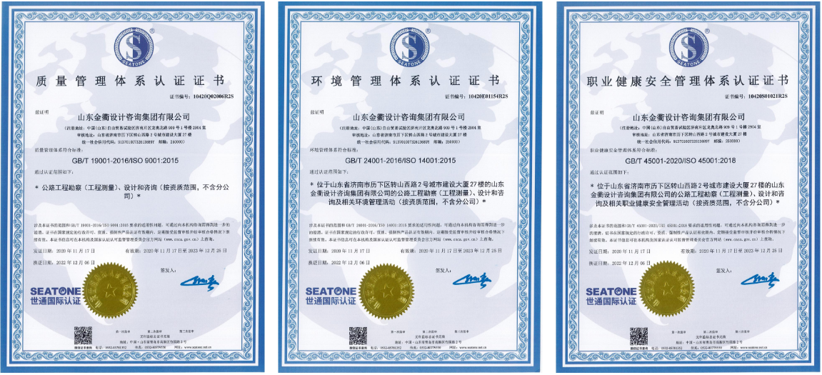 多年來,金衢設(shè)計集團(tuán)一直高度重視管理體系認(rèn)證工作,與山東世通國際認(rèn)證中心保持精準(zhǔn)互動,跟蹤聯(lián)系對接,積極籌劃準(zhǔn)備,順利完成了管理體系換版、再認(rèn)證和年度監(jiān)審等一系列評估驗收工作。