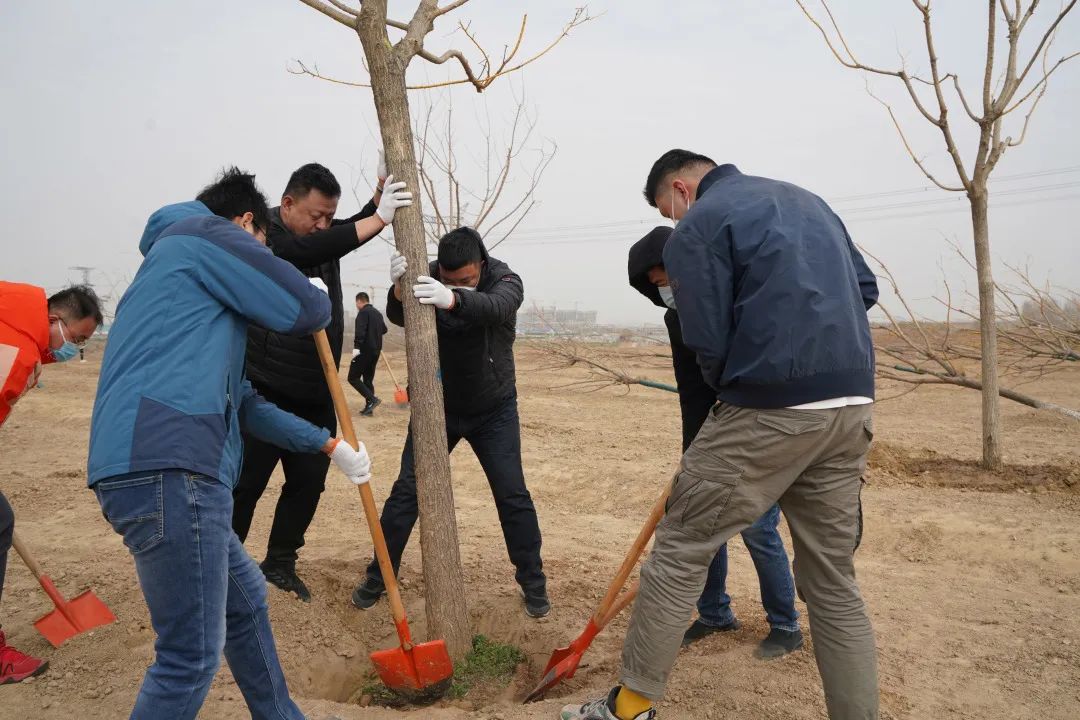 植樹活動(dòng)中,大家在工作人員的指引下,密切合作、分工配合,在樹木種植范圍內(nèi),深挖基礎(chǔ),厚培春壤,種下數(shù)百棵樹苗,為泉城濟(jì)南增添新綠。