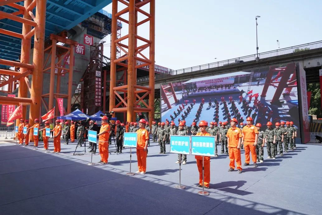 為全面貫徹落實黨的二十大精神和習近平總書記關于安全生產的重要指示要求,認真落實省、市安全生產工作視頻會議精神,進一步完善防汛應急預案,提高防汛搶險應急處置能力,5月12日,建設集團在濟南黃河公路大橋擴建工程現(xiàn)場開展“凝心聚力謀發(fā)展 統(tǒng)籌兼顧保安全” 2023年度防汛應急演練。山東省應急廳防汛抗旱處副處長王震,市應急局防汛抗旱處副處長楊志斌,市國資委信訪處副處長、二級調研員周琳琳,濟南黃河河務局水政處處長尹訓海,天橋黃河河務局防辦主任張遠博,建設集團總經理助理、安全總監(jiān)解漢忠出席活動,集團各部室及子公司主要負責人參加活動。