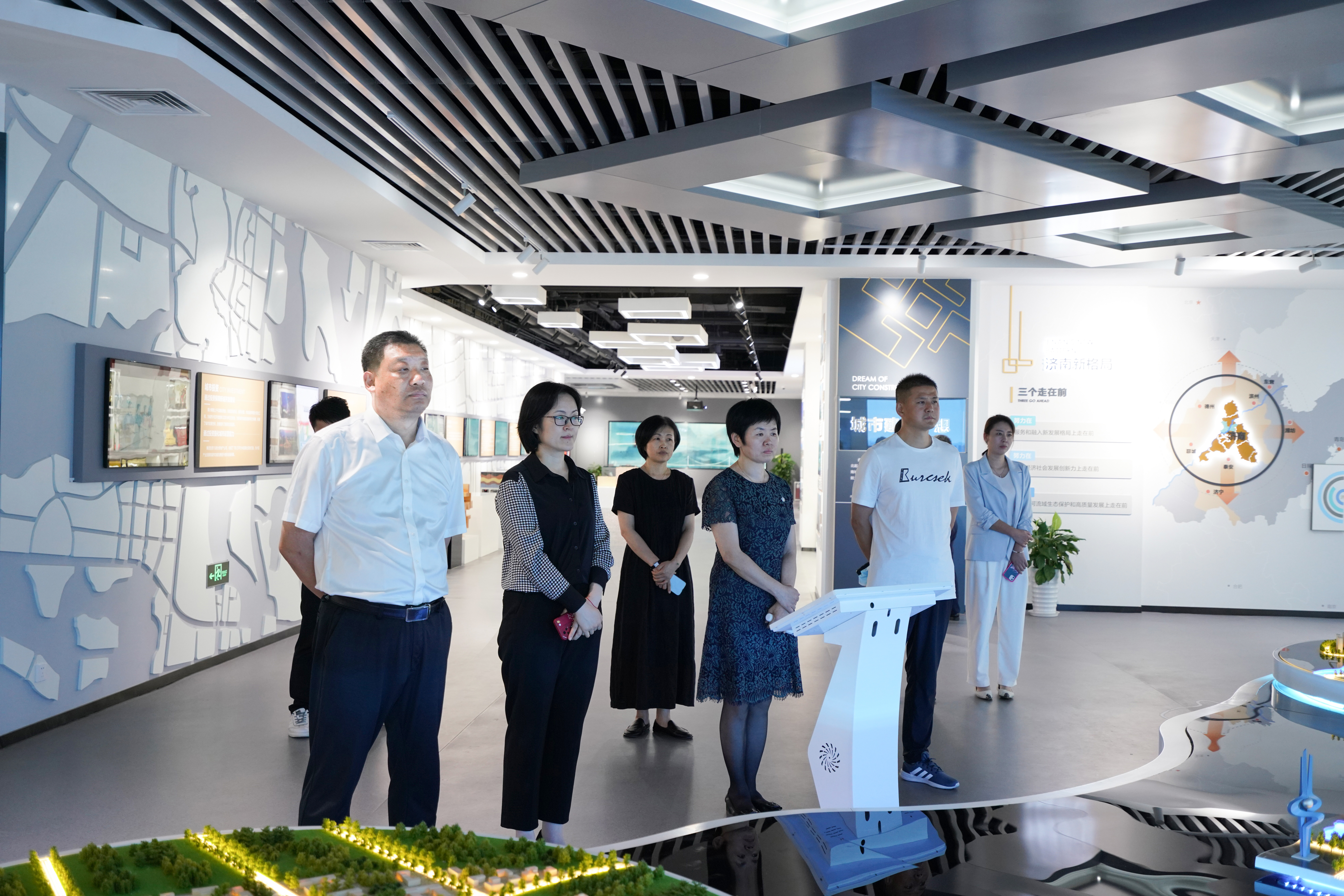 趙莉一行參觀了濟南城市建設(shè)集團展廳,通過聽取講解、溝通交流的方式,了解了建設(shè)集團黨建及業(yè)務(wù)開展情況。趙莉表示,建設(shè)集團堅持黨建引領(lǐng),履行國有企業(yè)的責(zé)任,實現(xiàn)集團發(fā)展與城市發(fā)展同頻,展現(xiàn)了國企擔(dān)當(dāng),下一步,市婦聯(lián)與建設(shè)集團的交流合作,同時充分發(fā)揮“聯(lián)”字優(yōu)勢,繼續(xù)當(dāng)好宣傳員,一如既往地關(guān)心和支持集團發(fā)展。