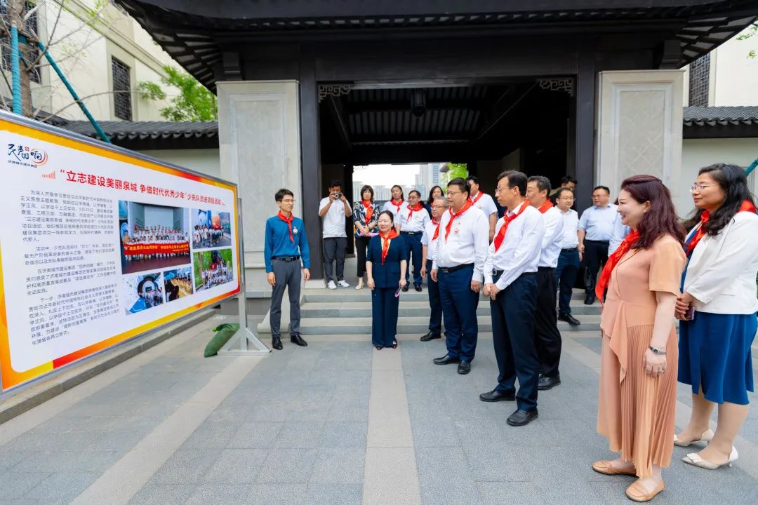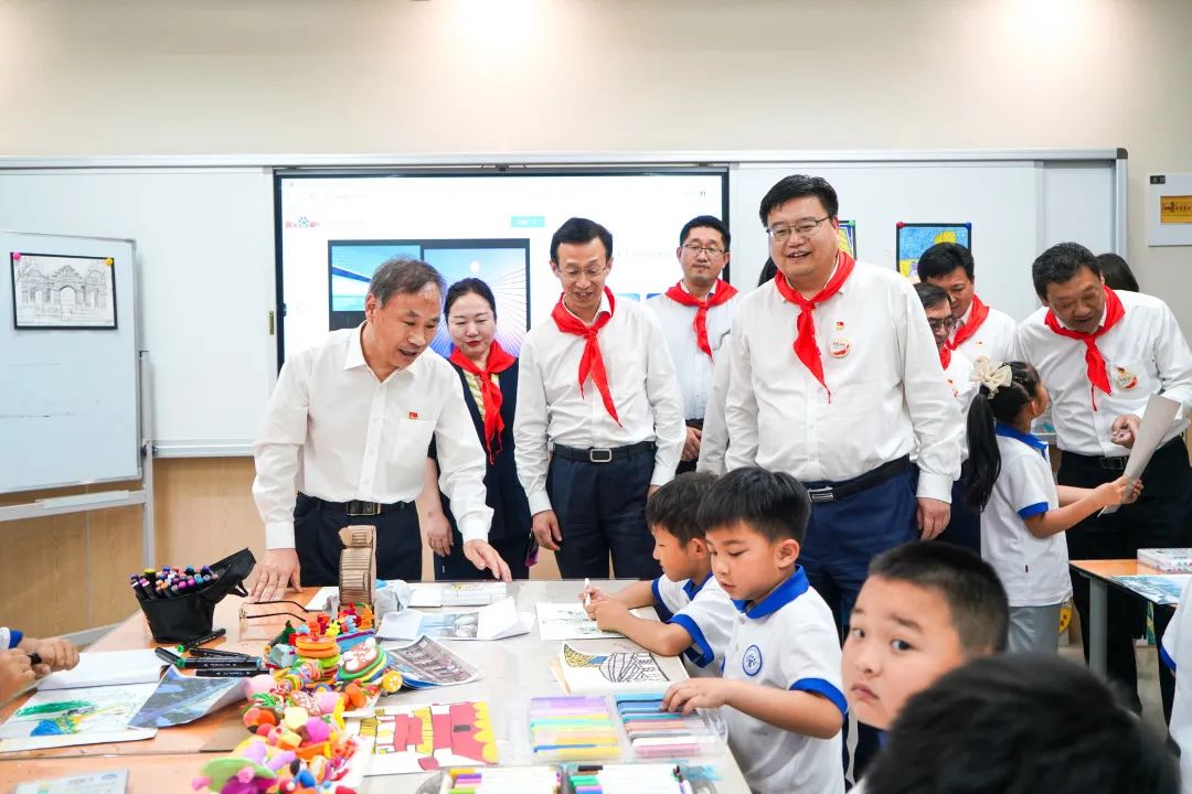 活動結(jié)束后,孫常建一行在楊柳春風(fēng)學(xué)校進(jìn)行了實地參觀調(diào)研,了解了書香校園建設(shè)活動,并與孩子們進(jìn)行了親切交流。孩子們熱情洋溢地介紹了“槐蔭少年說”黨團(tuán)隊一體化品牌建設(shè)活動、“我是黃河岸邊好少年”黃河文化項目化學(xué)習(xí)特色課程、“我眼中的康養(yǎng)名城、活力槐蔭”畫展和手工展、“家住槐蔭‘育’見成長”教育品牌、學(xué)校校訓(xùn)和南北融合辦學(xué)理念等情況,并進(jìn)行了古箏、寫生、經(jīng)典誦讀等美育教育特色活動表演,美術(shù)社團(tuán)、舞蹈社團(tuán)、合唱團(tuán)、足球社團(tuán)、啦啦隊的成員代表們進(jìn)行了成果展示。
