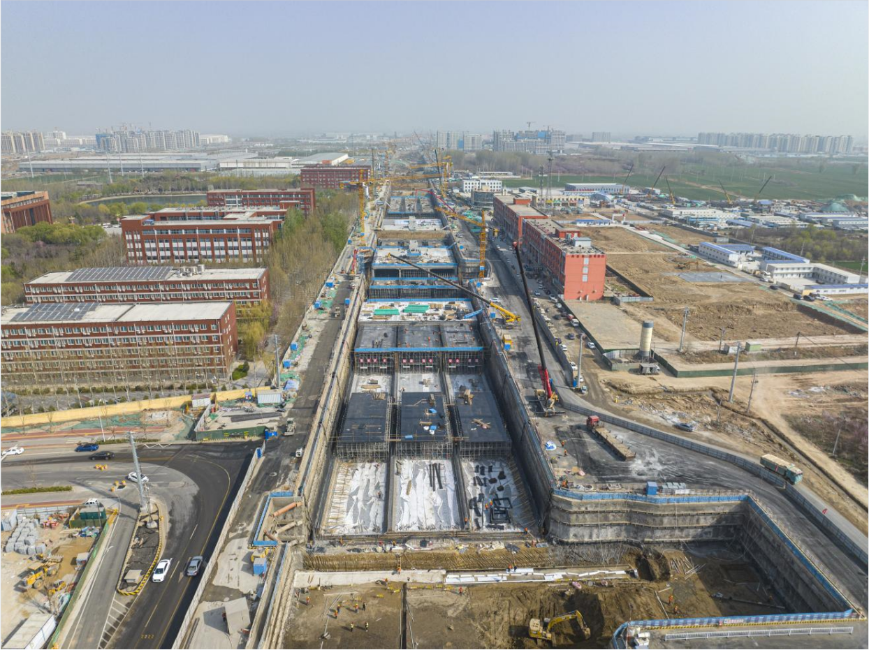 目前,建設(shè)集團正積極推進黃河大道青銀高速以北段項目建設(shè),主體結(jié)構(gòu)降水井完成率83%,冠梁完成率90%,地道土方開挖外運完成率84%,地道錨索完成率86%,地道坡面噴護完成率75%,止水帷幕完成率92%,主體澆筑完成率52%,底板防水卷材完成率34%,完成總工程量的39%。