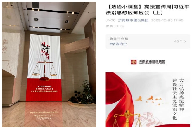 2023年12月1日至7日是全國第六個(gè)憲法宣傳周,集團(tuán)根據(jù)市國資委《濟(jì)南市2023年憲法宣傳周、山東省法治宣傳教育月暨爭創(chuàng)全國法治政府建設(shè)示范市集中宣傳活動(dòng)方案》要求,認(rèn)真開展了2023年國家憲法宣傳周活動(dòng),大力加強(qiáng)習(xí)近平法治思想與憲法的學(xué)習(xí)宣傳,積極引導(dǎo)集團(tuán)廣大干部職工尊法學(xué)法守法用法,推動(dòng)法治宣傳教育走深走實(shí)。